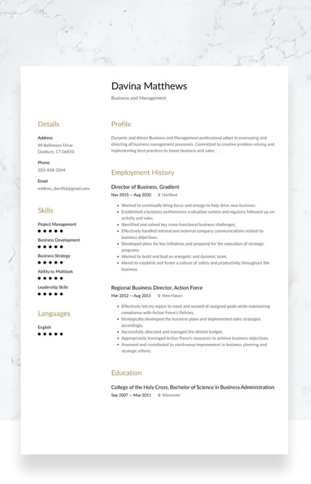 Are you a seasoned business professional, climbing the corporate ladder or a fresh graduate looking to start a business career? Get a resume that precisely demonstrates your exposure, skills, achievements, potential, and relevance to top recruiters in your field.