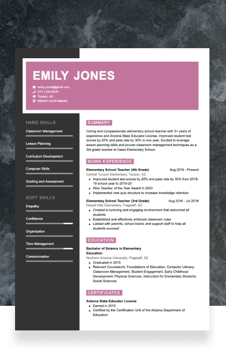 The competition is fierce in the education sector, but a chronological resume that focuses on your certifications and experience in education with clarity and emphasis on crucial winning aspects in this industry will significantly enhance your prospects.